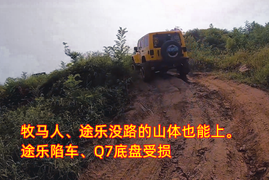 牧马人、途乐没路的山体也能上。途乐陷车、Q7底盘受损