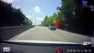 高速上,一男子横穿马路,玩命之举被司机拍下