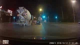 过红绿灯开入渣土车视线盲区,结果悲剧发生了!