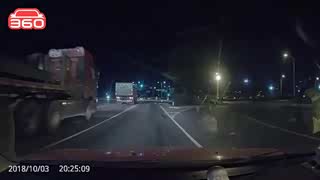 罐车突然变道,直接挤上黑色轿车,幸好车主反应过来