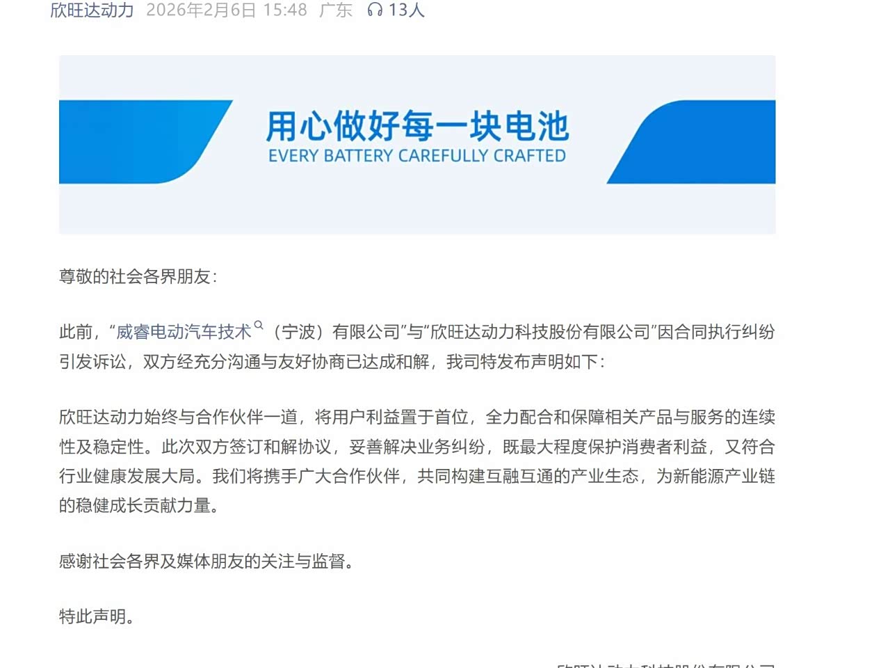 和解!23亿元天价诉讼落幕!欣旺达需在5年内结清