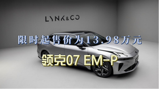 领克07 EM-P限时起售价为13.98万元,混动轿车市场的一匹“黑马。