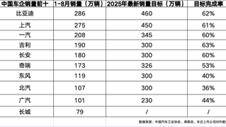 2025 年中国车企最新销量目标完成率分化,新能源转型成关键变量