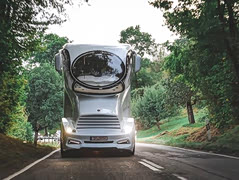 车型:elemment palazzo superior房车 奥地利的房车制造商 Marchi Mobile打造堪比奢华五星级酒店房车 世界上最豪华房车elemment palazzo superior,结合了赛车、航空、游艇领域的特性 36 英寸轮辋罩、高性能碳纤维材料、跑车式线条、可调节防晒系统与全景式直升机式挡风玻璃 双层空间,配备酒吧、加热地板、42 英寸 LED 电视以及来自丹麦高端 Hifi 音响品牌 Steinway & Lyngdorf 提供的音响系统。浴室可兼作水疗中心,主卧配有一张特大号床,床具来自为英国王室提供床上用品的制造商,真的是太土豪了!#房车#