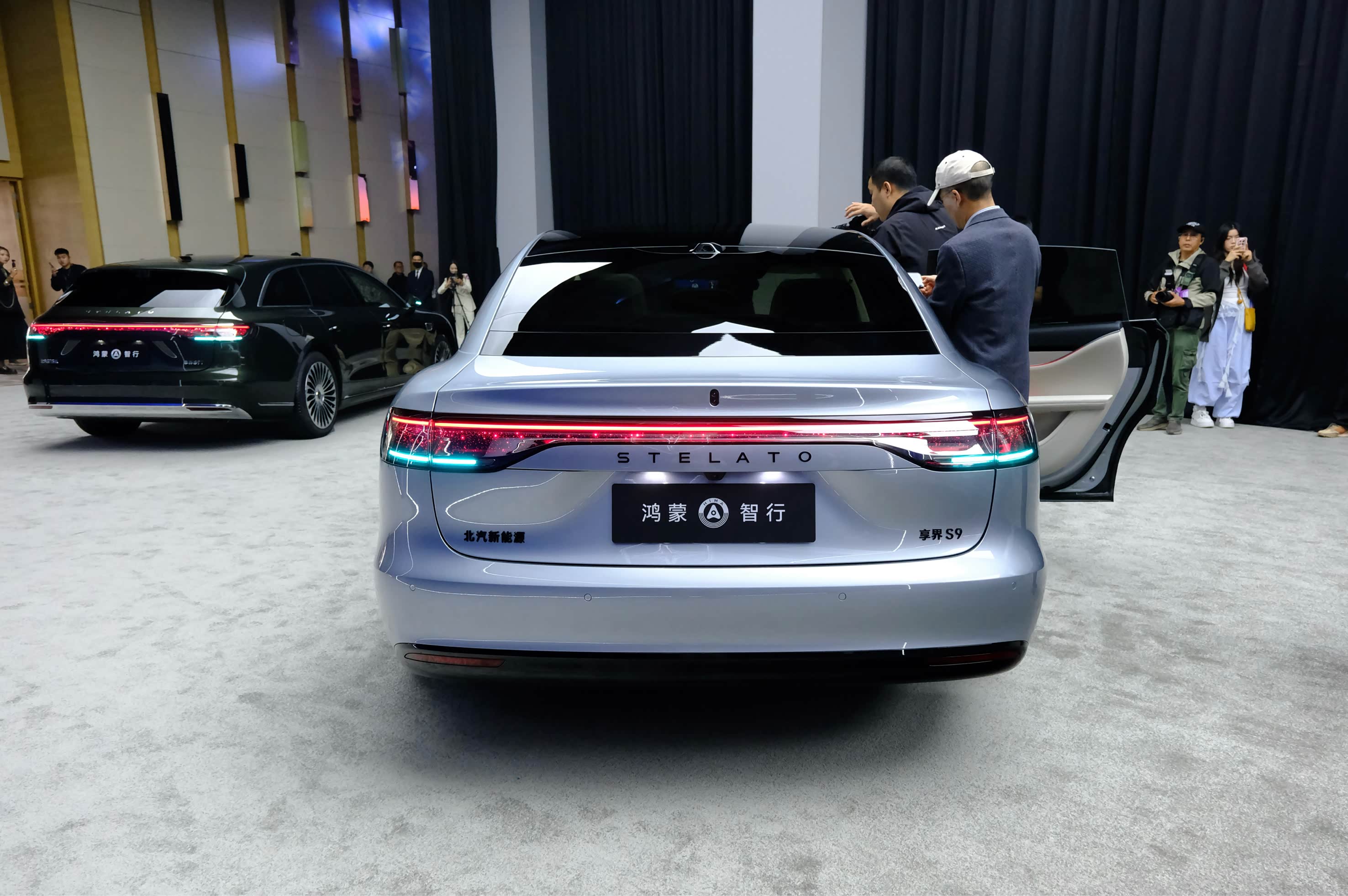 享界S9是50万以内最精致时尚、最没有登味、最有现代感的轿车,没有之一,不解释反驳。 我观察了一下,现在这年头参加发布会,拿相机拍车的快绝迹了,基本都是用手机或小设备简单拍拍。发布会人多车少,确实也很难排出高质的东西。但相机毕竟是相机,画质还是比手机强很多。所以,这次参加享界S9发布会我还是拿相机来了。所以,这几张享界S9银色黑曜套件版本的图片,估计是全网画质质量最好的了。 有一说一,这个版本颜色的享界S9是真的好看,很干净利落清爽精致运动。 我看到第一眼,就心动的不行。