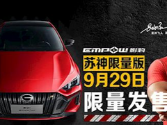 近日,我们从官方获悉,广汽传祺EMPOW影豹“苏神限量版”将于9月29日发售。影豹基于传祺GPMA架构打造,提供三种外观样式选择,分别为运动版、战机版以及赛道版。 其中运动造型配备了以凌云翼为蓝本的六边形大格栅,而战机造型则是在运动造型的基础上增加了一些更具个性的装饰,并更换为直瀑式的网格造型。赛道造型则最为激进,可以定制化选择的配色更多。 作为一款定位于年轻运动的产品,影豹采用了溜背式车身以及四出排气非常年轻运动。新车内饰配色以黑色为主,有黄色饰条进行点缀,贯穿空调出风口搭配一块大连屏,显得科技、运动兼顾。 动力方面,影豹全系标配钜浪动力旗下第三代1.5T发动机,最大功率130kW,最大扭矩270N·m。传动系统方面,匹配7速湿式双离合变速箱,官方公布的零百成绩为6.95s。