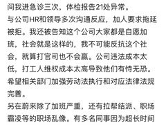 昨日(4.26)汽车圈发生了什么? 2023年4月27日星期四 1、蔚来工作半年加班近500小时,遭遇职场PUA,进急诊三次事情上热搜。蔚来同意协商和离职补偿,但要求签署“封口协议”。当事人称拒绝签署,为仍在超负荷加班却不敢反抗的同事发声。 一句话点评:请大家,一切以身体健康为主! 2、捷豹路虎将在未来五年投资150亿英镑用于开发电动汽车,并将在2025年推出一款新的纯电动捷豹汽车。 一句话点评:迟到总比不到好,电池在底部的情况下,电动的捷豹路虎更要考虑通过性了,有没有想买“电虎”、“电豹”的朋友? 3、保时捷Macan纯电版或将在安徽投产,先期将以进口形式引入国内。 一句话点评:为啥保时捷看着就比BBA帅呢? 4、比亚迪:海鸥正式上市,提供续航305km、405km的两款车型,售价在7.38-8.98万元,搭载磷酸铁锂“刀片电池”。 一句话点评:定位低于海豚,从售价来说,海鸥的对手有欧拉白猫、吉利几何E等,目前是比亚迪最便宜的车型,比亚迪对于“亲民化”市场还是不会放弃的。