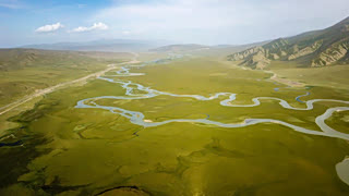 新疆独库公路经过的巴音布鲁克草原湿地,航拍出来就是绝美的风景