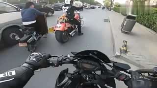 机车摩托川崎z1000北京街头偶遇哈雷大哥,这车气场可真强