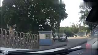 高速路口,车子失控撞向路障,不过命大,没有伤亡