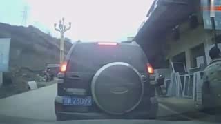 高速路上违停,被大货车碾压