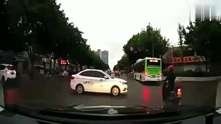 电动车女司机闯红灯,无辜白车被害身亡,女司机竟溜之大吉了