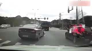 轿车路口加速想加塞,被“撞飞腾空翻滚”