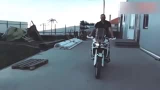 为啥摩托车一定要装车架?看这男子摔倒的那一刻,你就明白了