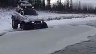 越野车挑战冰湖,砸破了冰面,这下可进退两难了!