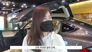 韩国小姐姐试坐特斯拉modelX鸥翼门