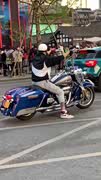 机车大佬开四个9炸弹号牌几十万的哈雷摩托溜街打卡太古里