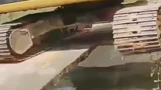借你十个胆子,也不敢这样开挖机过这桥