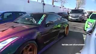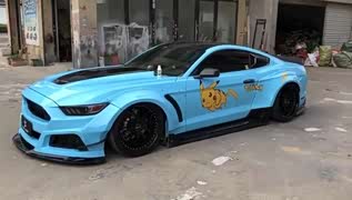 一辆蓝色的野马,底盘被改的完全在地上磨着跑!