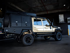 到头了:越野皮卡天花板丰田lc79旅居车澳式改装 在越野的传奇之路上,LC70系列宛如一颗璀璨明星,而LC79柴油V8就是这条传奇路线的终点站。它那强劲的柴油V8发动机,就像一颗充满力量的心脏,每一次的轰鸣都是对荒野的挑战。LC79继承了LC70系列的坚韧血统,带着与生俱来的不羁,在复杂地形中如履平地,它是越野者心中的终极向往,是自由征程的完美归宿。