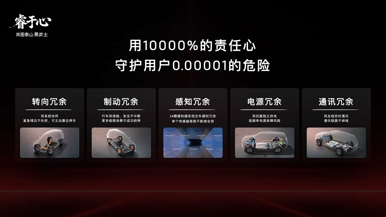 岚图泰山Ultra和黑武士版的核心是华为乾崑896线双光路激光雷达量产上车,本质上是把行业还在验证阶段的能力,提前变成用户可体验的产品能力。 四激光雷达+34颗传感器的组合,不只是堆料,更像是在重构一套“极限安全冗余”的系统架构,尤其是在复杂突发场景里的决策稳定性。 有意思的是,岚图这次的策略并不是单点突破,而是明显在对标当前智驾第一梯队,比如华为ADS的上限体验,同时把安全冗余往更高维度推。 转向、制动、感知、通信、电源五大系统双冗余,这种配置逻辑已经接近航空级思路,目标用户也很明确,就是对安全极度敏感的高端家庭。 但如果只讲智驾,其实低估了这台车。 三腔空悬+后轮转向+IPB2.0,让一台5.2米的SUV做到接近轿车的动态响应,这在当前一味强调“软”的大车市场里,是一个不太一样的取向。 而泰山续航和补能则是典型的工程导向解法,5C超充+350km纯电+1400km综合续航,核心不是参数多高,而是把使用场景覆盖到几乎不需要思考补能策略。 所以整体来看,岚图泰山这套产品逻辑很明确,用激进的感知硬件建立智驾上限,用系统冗余锁死安全底线,再用机械素质兜住驾驶体验。