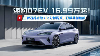 海豹07EV 16.99 万起!二代刀片电池+9 分钟闪充,同级高价值首选