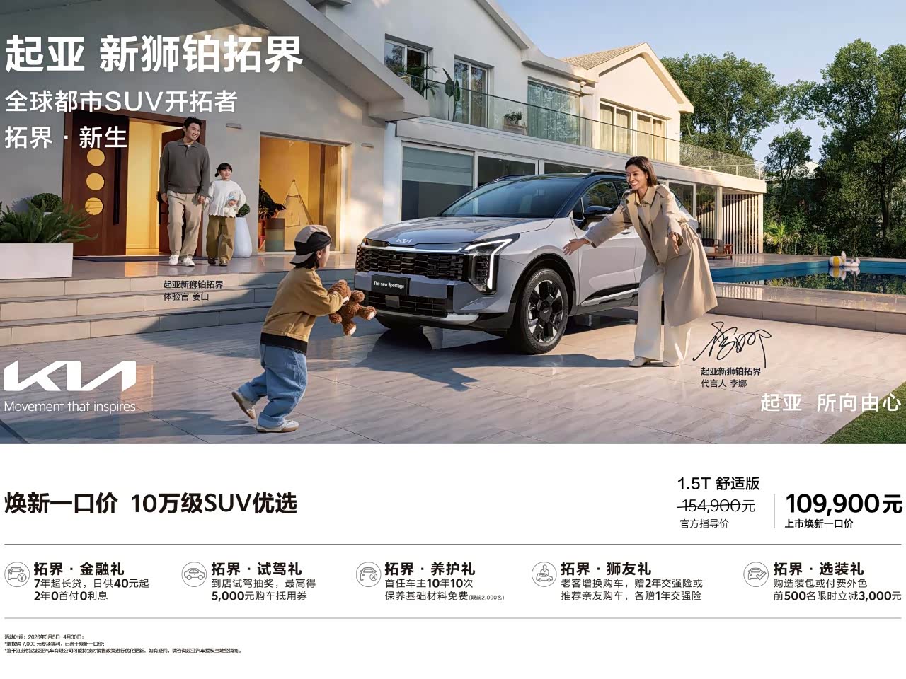 起亚新狮铂拓界诚意上市全国统一“焕新一口价”10.99万元起