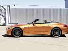 2024款梅赛德斯-AMG SL63 Manufaktur Big Sur特别版亮相:这款限量生产的特别版车型仅适用于美国,内外都进行了独特的视觉改造。梅赛德斯以Manufaktur Orange Flame Metallic (橙色火焰金属漆)完成了该车型。黑色制动卡钳、21英寸黑色车轮和带有AMG Exterior Chrome套装元素的黑色软顶增加了车辆的冲击感。SL63还首次在前面板上增加了AMG徽章。