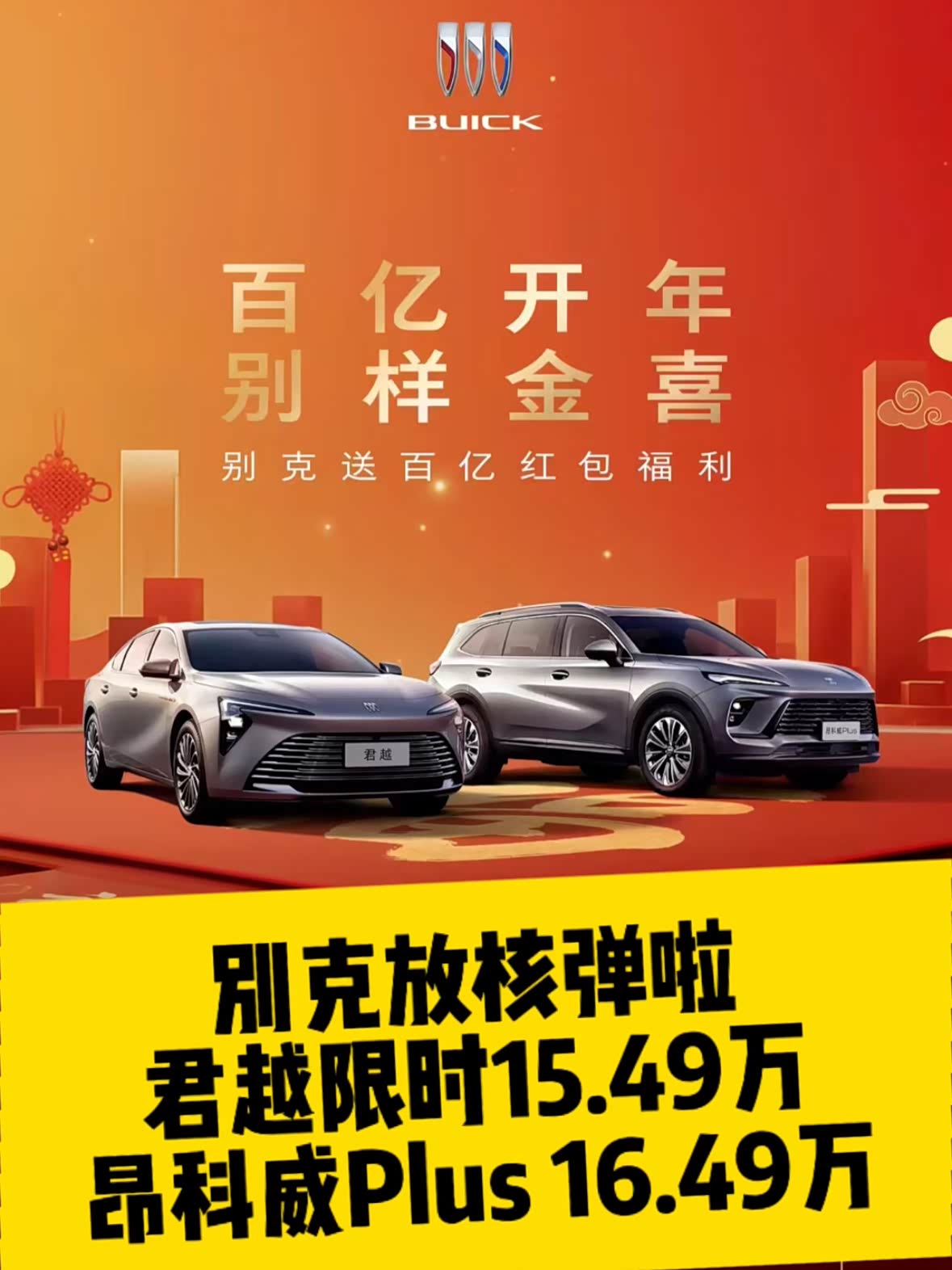 别克放核弹 君越15.49万 昂科威Plus16.49万