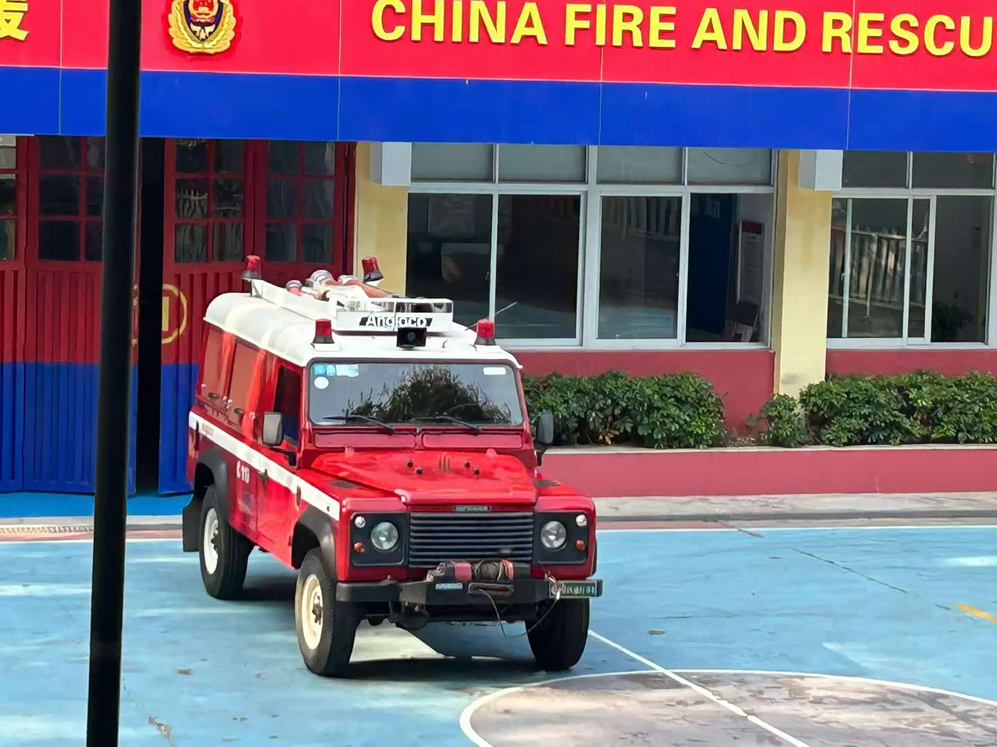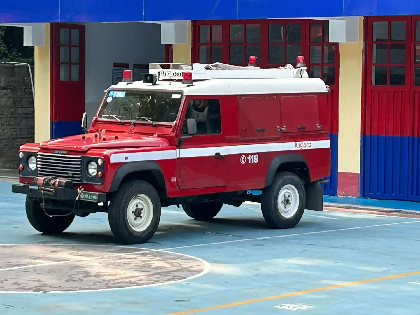 见的同款老卫士消防车型~,蓝牌过户 V8手动