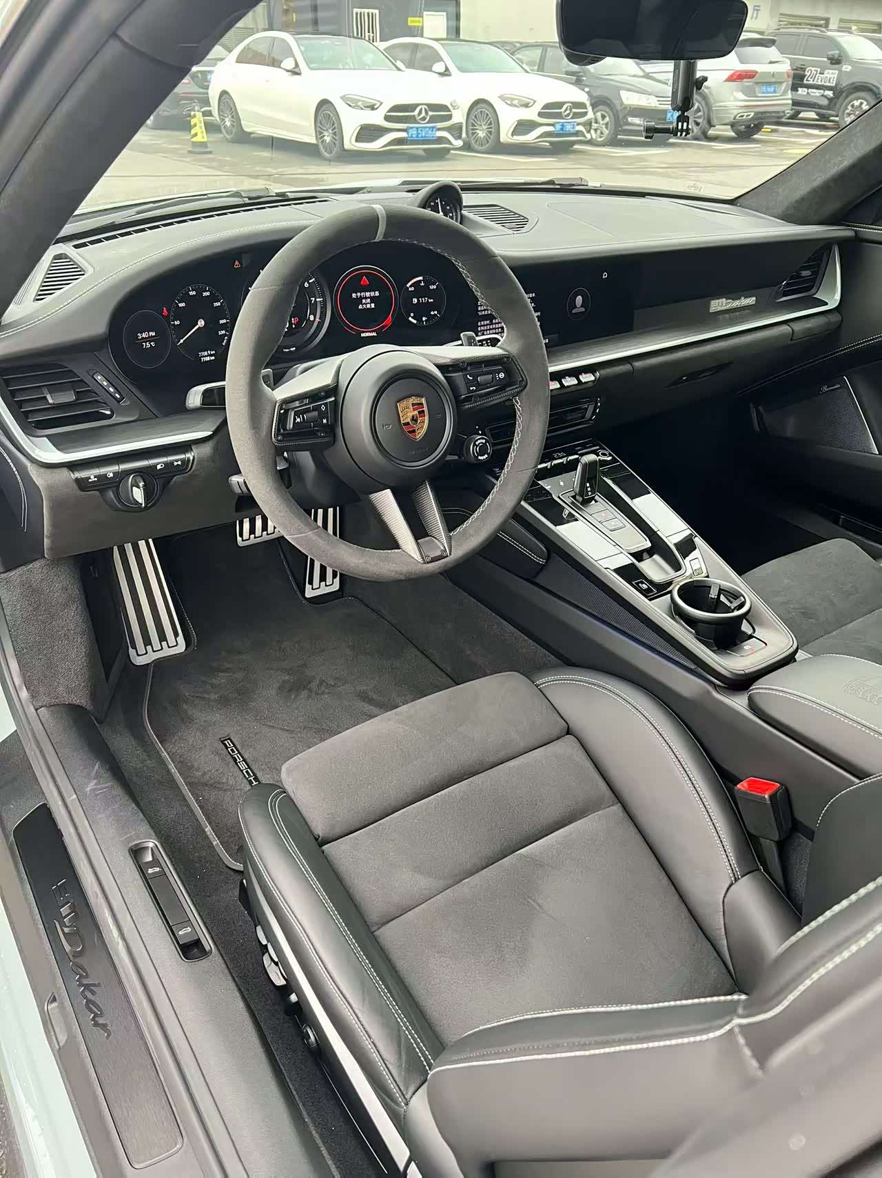 保时捷992 ST,百公里,准新猛兽,2025年 ✨ **轻量化终极形态** • 3.8L水平对置高转发动机 • 镁合金轮毂+碳纤维穹顶 • 原厂碳纤维防滚架+碳纤维座椅 🎯 **性能数据** - 345km/h极速 - 2.9秒破百 - 较GT3减重35公斤 🛡️ **收藏级车况** 2024年出厂仅行驶[恐惧]数百公里 PCCB碳陶制动系统 🌟 **赛道特权** 可直接参加保时捷赛道日 拥有厂家冠军白涂装 全球限量编号铭牌 👇仅邀赛道玩家私洽|见证纯粹驾驶机器