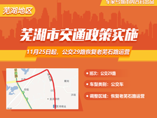 芜湖市民请注意!25日起,29路公交车运行线路有变!