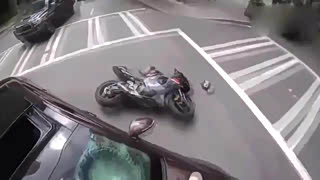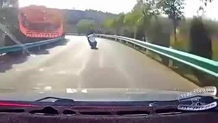 摩托车小伙弯道飙车,狂按喇叭都没用了