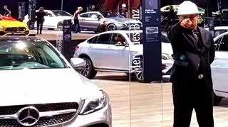 世界车展奔驰展厅,保安带安全帽全副武装,人潮依旧火爆