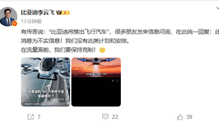 今年以来,低空经济持续火爆,飞行汽车直接成了车圈和网友热议的顶流话题!要说最吸睛的,还得是小鹏家的飞行汽车——每次车展一亮相,妥妥的“全场焦点”,镜头和人群全往那凑,流量密码直接拿捏了。 眼看这赛道热度拉满,不少车企都扎堆入局了。除了小鹏,吉利、奇瑞、广汽、长安、一汽这些自主大厂全都下场布局,忙着搞技术研发、冲产业化,足以见得低空出行这块蛋糕有多香。 就在大家热议谁是下一个入局者时,网上突然传起“比亚迪要出飞行汽车”的消息,直接把讨论度拉到新高度。不过这传言刚冒头就被打脸了——昨天,比亚迪公关负责人李云飞直接在微博发文辟谣,明确说“比亚迪没计划、没安排做飞行汽车”,一句话把不实传言锤得死死的。 这波辟谣也让网友们讨论起来:虽然低空经济前景看着超广阔,但头部车企并没有盲目跟风。比亚迪的明确表态,也能看出来不同大厂在新兴赛道上的思路不一样,有的冲在前头探索,有的则选择稳扎稳打,各有各的节奏。
