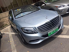 罕见的奔驰S级新能源车,S500eL ,plug-in HYBRID 应该就属于插电混动模式。车主已上绿牌照,车辆外观基本与汽油版一致,只是在刹车卡钳、大灯等处使用蓝色涂装,象征环保。所以,百万奔驰豪车也苦于拍不到车牌吗?😂