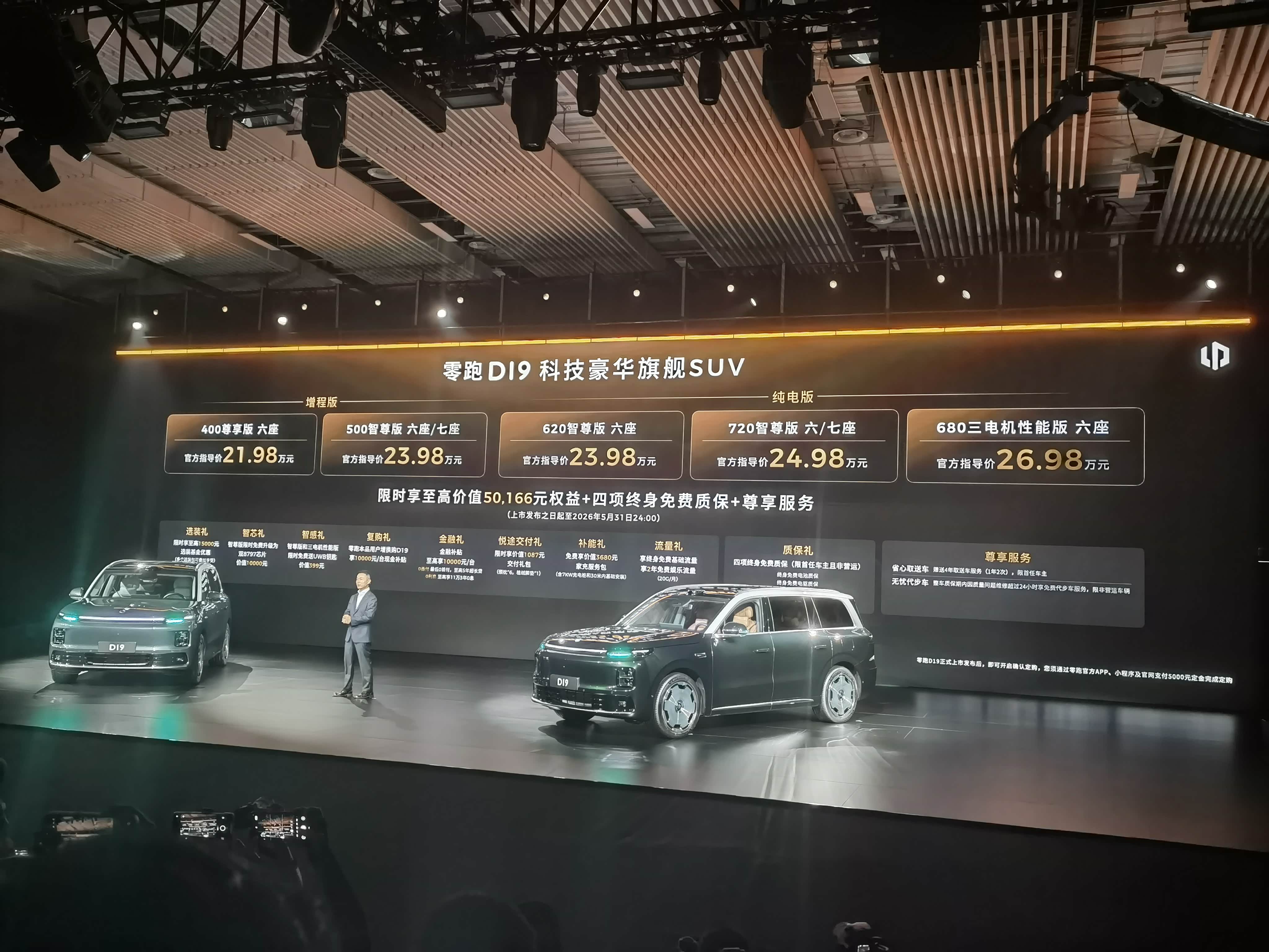 零跑上了高端旗舰,零跑D19! 大家比较关心的价格来了,21.98万-26.98万元 。有增程也有纯电,有六座也有七座,还有性能版的。这对不用需求的消费者来说很友好。 还有几个看点值得关注。 1.是续航与补能:增程版有大电池加持,纯电续航500km(CLTC),并支持800V高压快充,实现“充电一刻”高效补能。 2是智能底盘和操控:搭载LMC 2.0底盘,具备120km/h高速爆胎稳定控制、魔毯预瞄(过坑舒适)、零动掉头(灵活转向)三大核心功能。 3是智能座舱:配备五屏交互系统,包括60英寸AR-HUD、后排3K大屏等,实现全舱立体交互。搭载高算力双8297芯片。 4是拓展场景空间:前备箱布置一下就是露营观景发大沙发,品茶台。