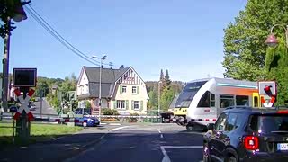 德国郊区小镇的铁路交叉道口