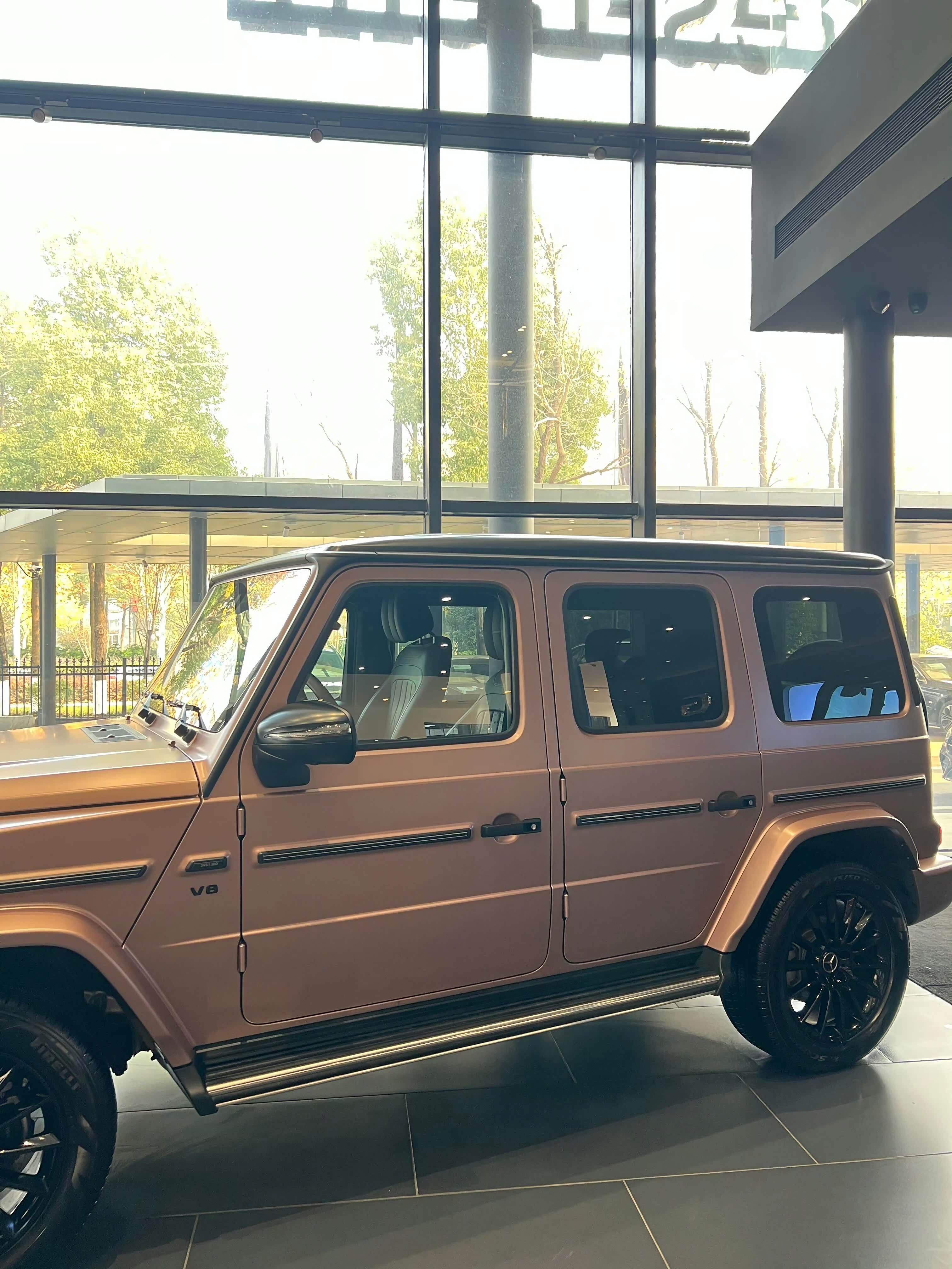 奔驰G500璀璨传奇特别版,这“哑光慕云粉/黑内”配色简直是神来之笔!限量300台,指导价254万,妥妥的定制奢侈品。 它搭载4.0排量双涡轮增压V8发动机,在当下可太珍贵了。外观上,哑光粉色车漆配哑光黑车顶,和硬朗外形搭配,气质独特。车身侧面有专属编号,车门把手是钻石标志,开门仪式感拉满。 内饰更绝,黑色皮质座椅配慕云粉色缝线,副驾和踏板有专属设计,车门提栓还嵌着钻石。车钥匙有纯银徽章。这哪是车,分明是行走的艺术品,有钱真得整一台!