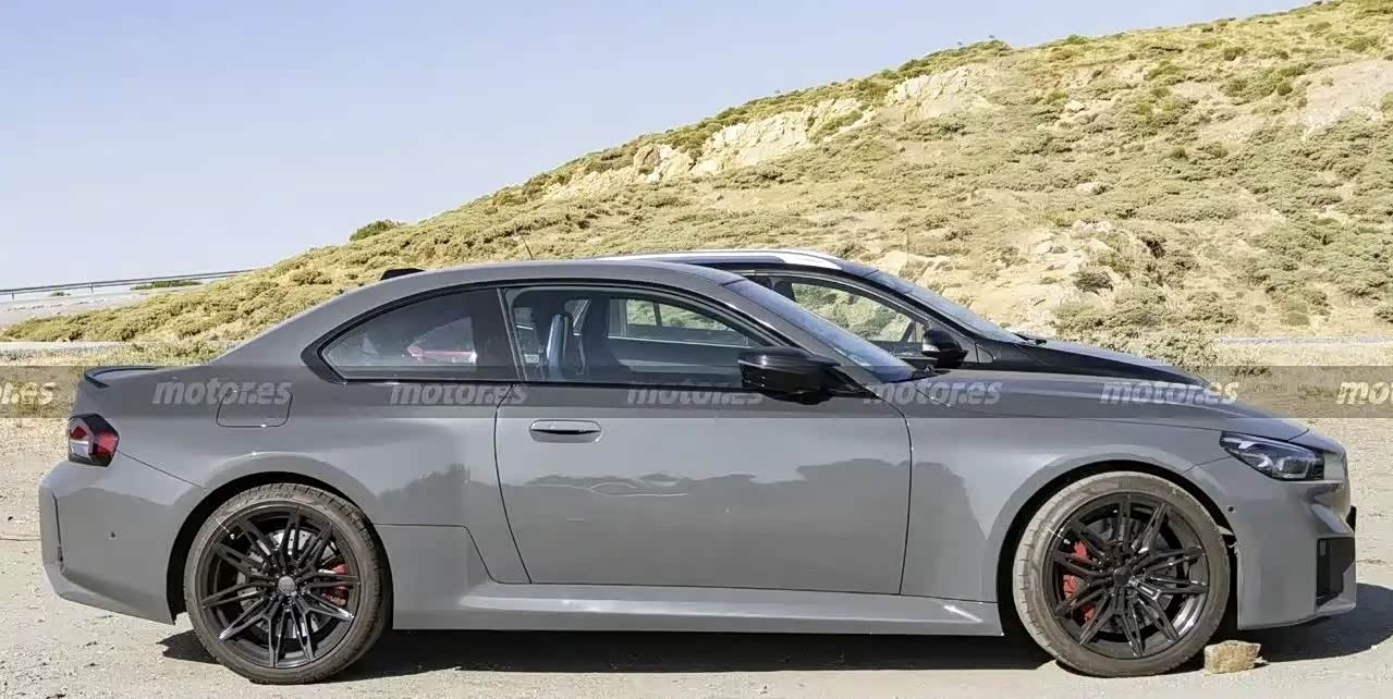 宝马M2 xDrive四驱版海外谍照曝光,这颜值太能打了! 前脸双肾形格栅搭配横幅式结构,层次感直接拉满,熏黑大灯组大气又深邃。三段式下包围简单又不失霸气,返璞归真中尽显实力。 侧面经典双门溜背,轿跑风格浓郁。贯穿式腰线、内凹式门把手,既实用又能降低风阻。多幅式熏黑轮毂配大尺寸打孔刹车盘和红色卡钳,运动感爆棚。 尾部小鸭尾和黑色扰流板动感十足,熏黑尾灯与前大灯呼应。多边形牌照框内凹设计,下包围扩散器更是点睛之笔。2026年上市,很是期待它开在路上的风采! 除了外观,宝马M2 xDrive四驱版的四驱系统也是一大亮点。这套四驱系统能够根据不同的驾驶场景,智能分配动力,无论是在湿滑路面还是高速过弯,都能提供出色的抓地力和稳定性。想象一下,当驾驶者在蜿蜒的山路上疾驰,四驱系统精准地将动力传递到每一个车轮,那种操控的快感简直无法言喻。 据可靠消息,它的动力配置也会相当强劲,可能搭载升级版的高性能发动机,配合先进的变速箱,让加速更加迅猛。强劲的动力与优秀的四驱系统相结合,无疑会让这款车在性能车市场中占据一席之地。