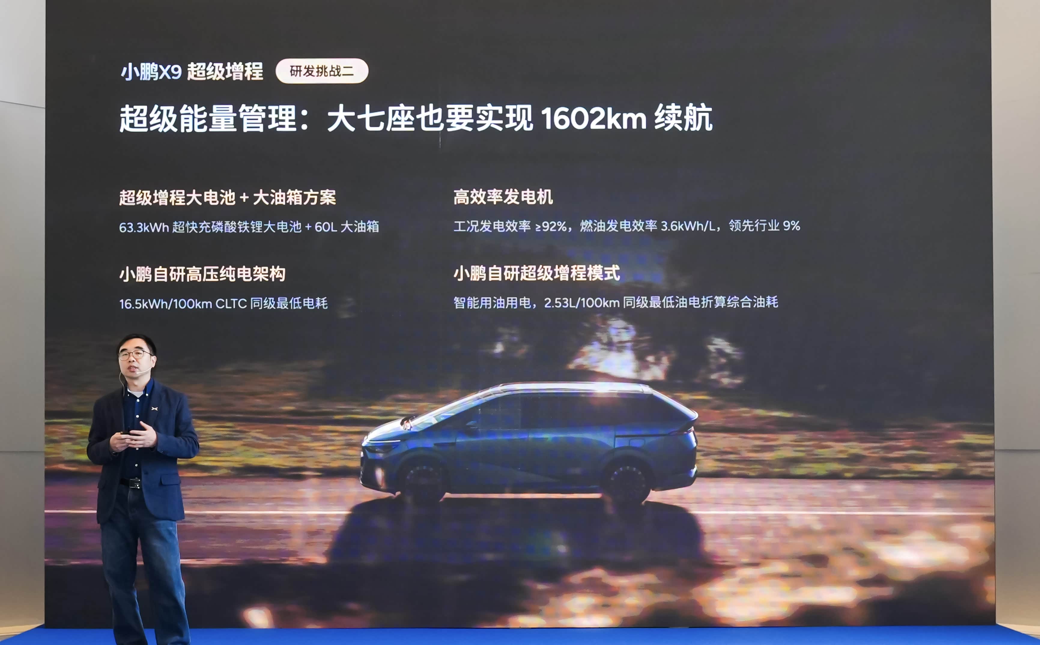小鹏X9增程版这次和华为联手,12月2日,双方还在华为松山湖园区举办了技术分享会。 它看点超多。前舱布置紧凑,不占车内空间,一家人出行也宽敞。续航长达1602KM,采用63.3kWh磷酸铁锂电池+60L油箱的大电池大油箱方案,1升油发3.6度电,还能智能用油用电,综合油耗最低2.53L。增程器也高效,76kW持续发电功率,150km/h巡航也不在话下。 这车11月20日已上市,纯电续航452公里,售价30.98 - 32.98万元,很值得入手! 此外,小鹏X9增程版在智能科技方面也毫不逊色。得益于与华为的合作,它搭载了华为先进的智能驾驶辅助系统,能够实现多种复杂场景下的自动跟车、变道等功能,大大提升了驾驶的安全性与便利性。车内的智能交互系统也十分强大,超大尺寸的中控屏操作流畅,语音识别精准迅速,能让驾驶者轻松控制车内各项功能。 外观上,小鹏X9增程版延续了小鹏汽车一贯的时尚科技风格。车身线条流畅动感,前脸独特的大灯组设计极具辨识度,整体造型既大气又不失科技感,无论是城市通勤还是长途旅行,开在路上都能吸引众人目光。相信它会成为市场上一款极具竞争力的车型,为消费者带来更多优质的出行选择。