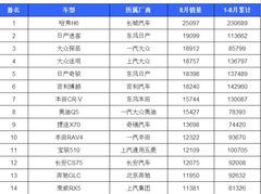 8月份SUV销量排行,大众两车齐头并进,国产一车成最大黑马