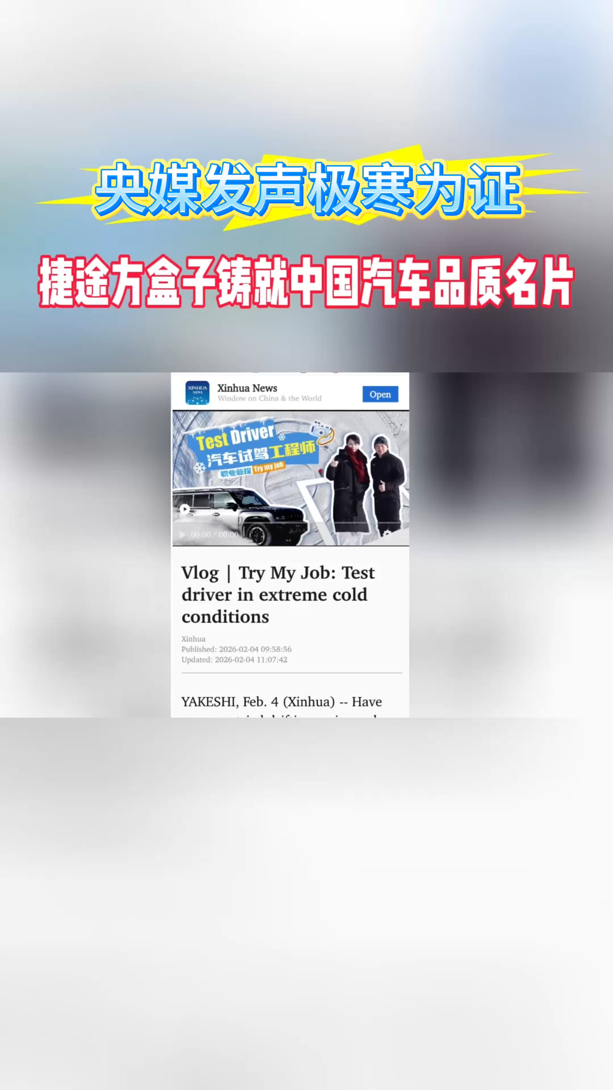 央媒发声极寒为证,捷途方盒子铸就中国汽车品质名片