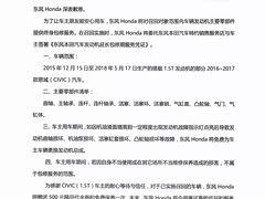 2018年7月9日,国家质检总局发布公告,东风本田思域因发动机缺陷宣布召回。决定自2018年7月16日起,召回2015年12月15日至2018年5月17日生产的搭载1.5T发动机的部分2016-2017款思域(CIVIC)汽车,共计294511辆。 公告中写道,本田思域1.5T在低温环境下短距离行驶时,发动机机油液面会增高,机油液面增高到一定程度时会出现发动机故障指示灯点亮,如果在这种状态下持续运行车辆可能造成发动机损坏,存在安全隐患。 本田宣布召回294511辆缺陷车辆,产品缺陷日期可追溯至2015年12月15日。也就是说,东风本田售卖的思域,长达两年半存发动机缺陷。而直到存同样缺陷的本田CR-V停售 召回计划备案了之后,7月9日,东风本田官方正式发表声明,深表歉意,除召回近30万辆汽车外,还对召回车型发动机主要零部件提供终身包修服务,这“终身包修”的服务也与CR-V一样。随后就有车主收到厂家的召回通知短信,信息显示厂家将赠送500元的精品代金券和免费保养一次。 \因此,小编建议喜欢思域的用户请再等一个冬天看看,如果您迫切需要车,不妨来车尚家二手车检测机构!杜绝1.5T,质量绝对杠杠的。关注车尚家公众号,免费咨询有关二手车的最新咨讯!前100名免费预检哦!先到先得!