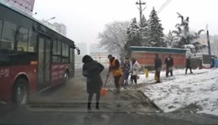 工人正在路边铲雪,公交车丝毫不减速冲了过去,网友:太嚣张了!