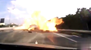 货车变道时与其他车相撞爆炸失火,网友:还是要稳稳当当的开车!
