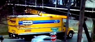 大卡车不顾车高,网友:限高杆的作用在此刻就体现的很重要了!
