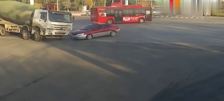 红车转弯时在货车的视线盲区内不幸被撞,网友:希望车主平安!