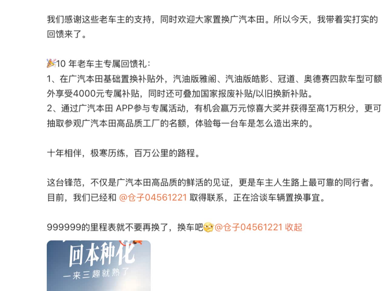东北大哥神操作!锋范10年干爆百万里程,广本这波回应太圈粉