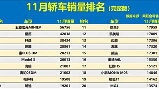 11月轿车销量榜显示,新能源车型已实现对主流市场的全面主导。 五菱宏光MINIEV以超过5.6万辆的销量夺冠,验证了入门级电动代步车的稳固需求。榜单最显著的特征是新能源产品占据了绝对优势:前10名中,包括五菱宏光MINIEV、吉利星愿、比亚迪秦PLUS DM/海豹05DM、特斯拉Model 3等在内的新能源车型至少占据6席,且覆盖了从A00级到B级的不同市场。 中国品牌展现出强大的竞争力。吉利星愿作为全新电动车型迅速攀升至第二位,比亚迪多款车型持续热销。合资品牌中,仅轩逸、速腾、帕萨特等少数传统燃油车型仍保持在前列,但整体排名正被新能源车不断挤压。 值得注意的是,智能化电动轿车正成为新增长点。小鹏MONA M03、极狐T1等新势力车型进入榜单,表明市场对科技属性的高度关注。整体而言,轿车市场的电动化转型速度更快、程度更深,消费者选择已明显向新能源倾斜,传统燃油车面临巨大挑战。